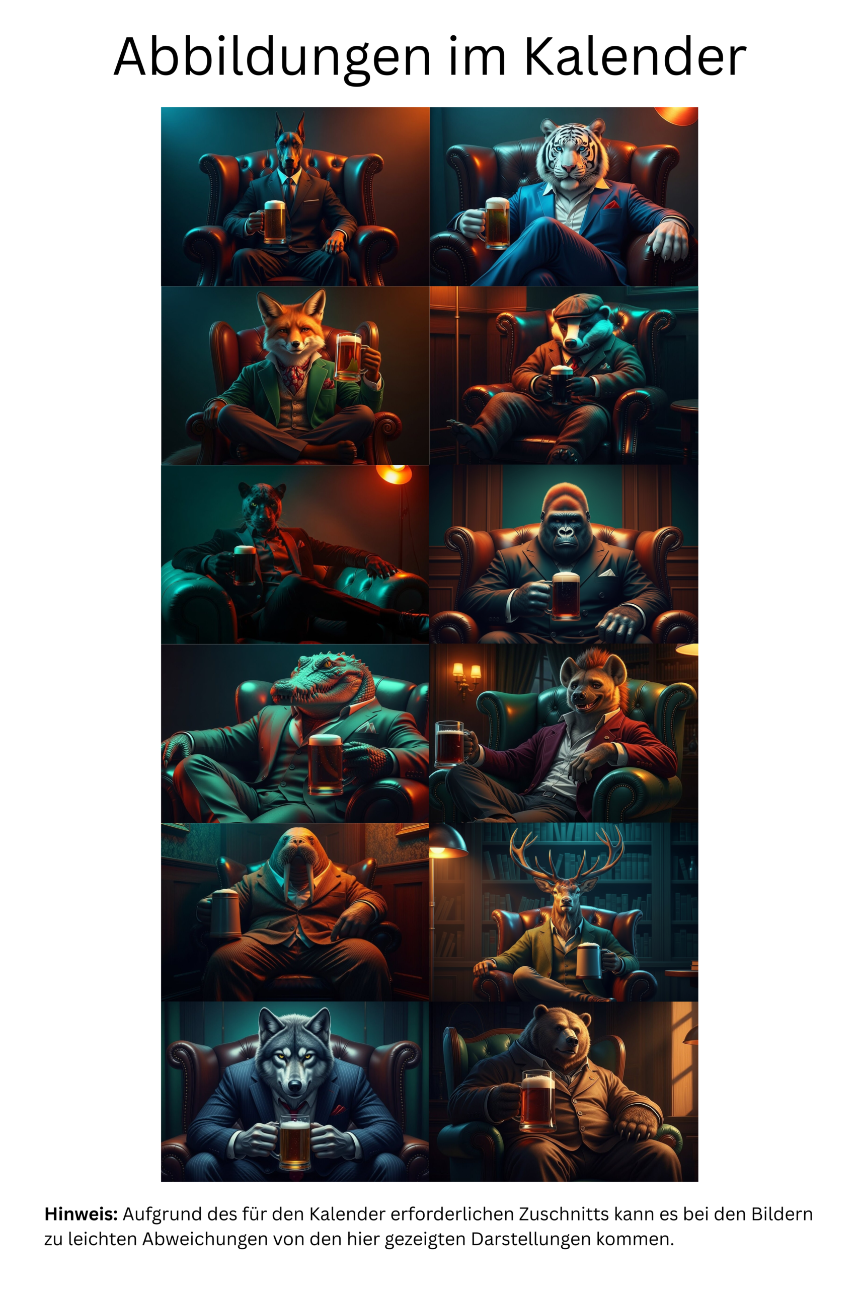 🍺 Einzigartige Motive: Vom Dobermann im Business-Suit bis zum Tiger im Sessel.